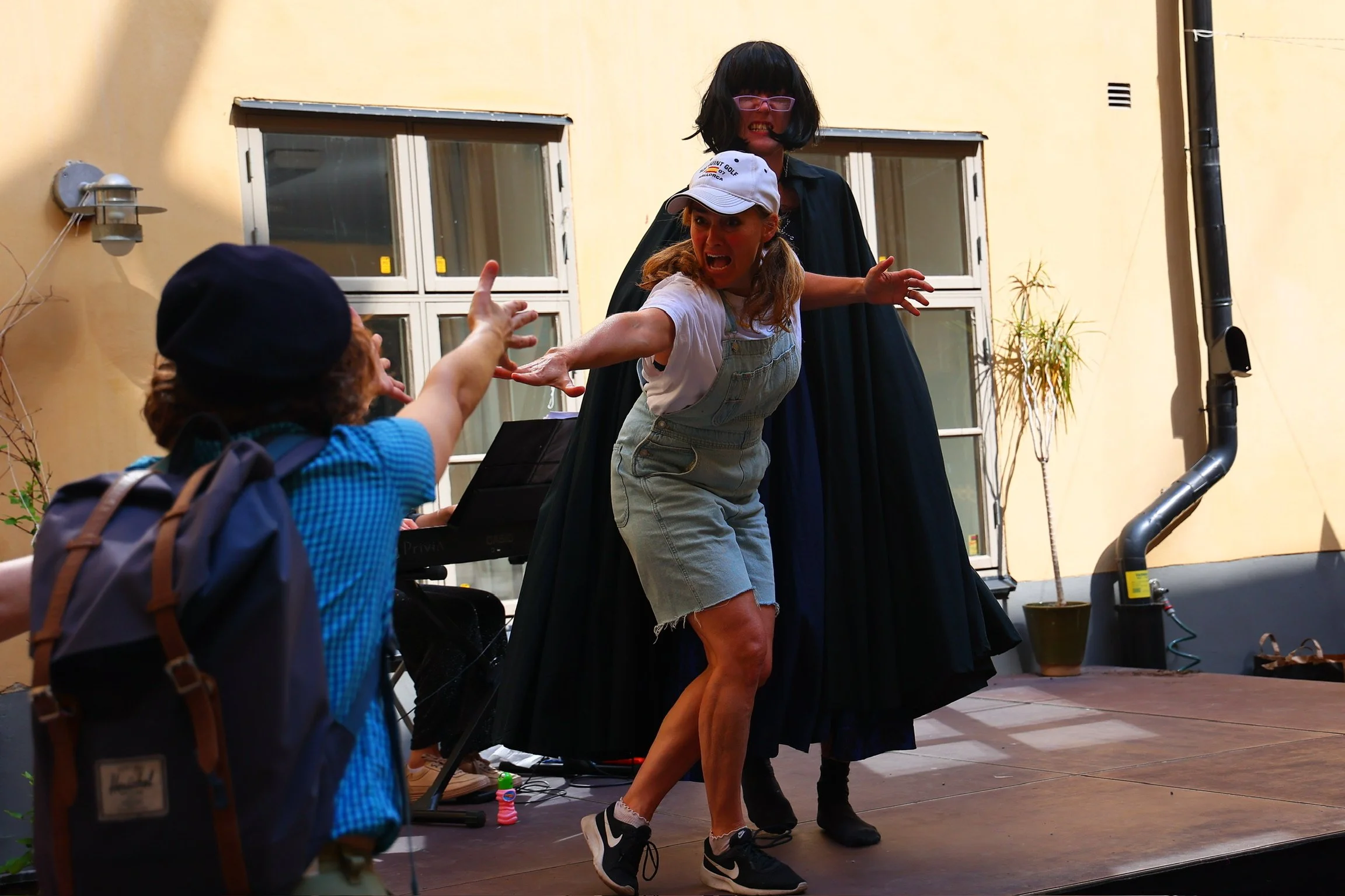 Med hjälp av vår erfarenhet och breda utbildning inom opera, teater och musikal och skapar vi interaktiva föreställningar där publiken är en del av berättelsen. Våra föreställningar är inte nyskrivna och svåra – de är anpassade på barnens villkor med igenkännbar musik och lekfullhet som bjuder in alla till operans värld. Vi spelar nära publiken och bland barnen, så varje möte blir personligt, varmt och engagerande.